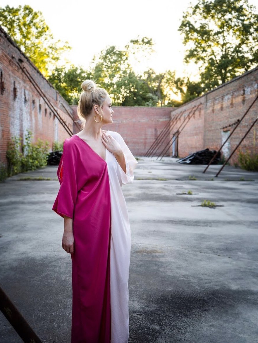 Designed for the Pink Power fashion show in 2018, held in honor of Breast Cancer Awareness Month, this color-blocked caftan dress celebrates strength, femininity, and resilience. The fluid silhouette and slit sleeves evoke openness and grace, while the bold pink tones pay tribute to the collective spirit of hope and empowerment. Through this piece, I sought to merge purposeful design with emotional storytelling — transforming fashion into a visual expression of unity and courage.