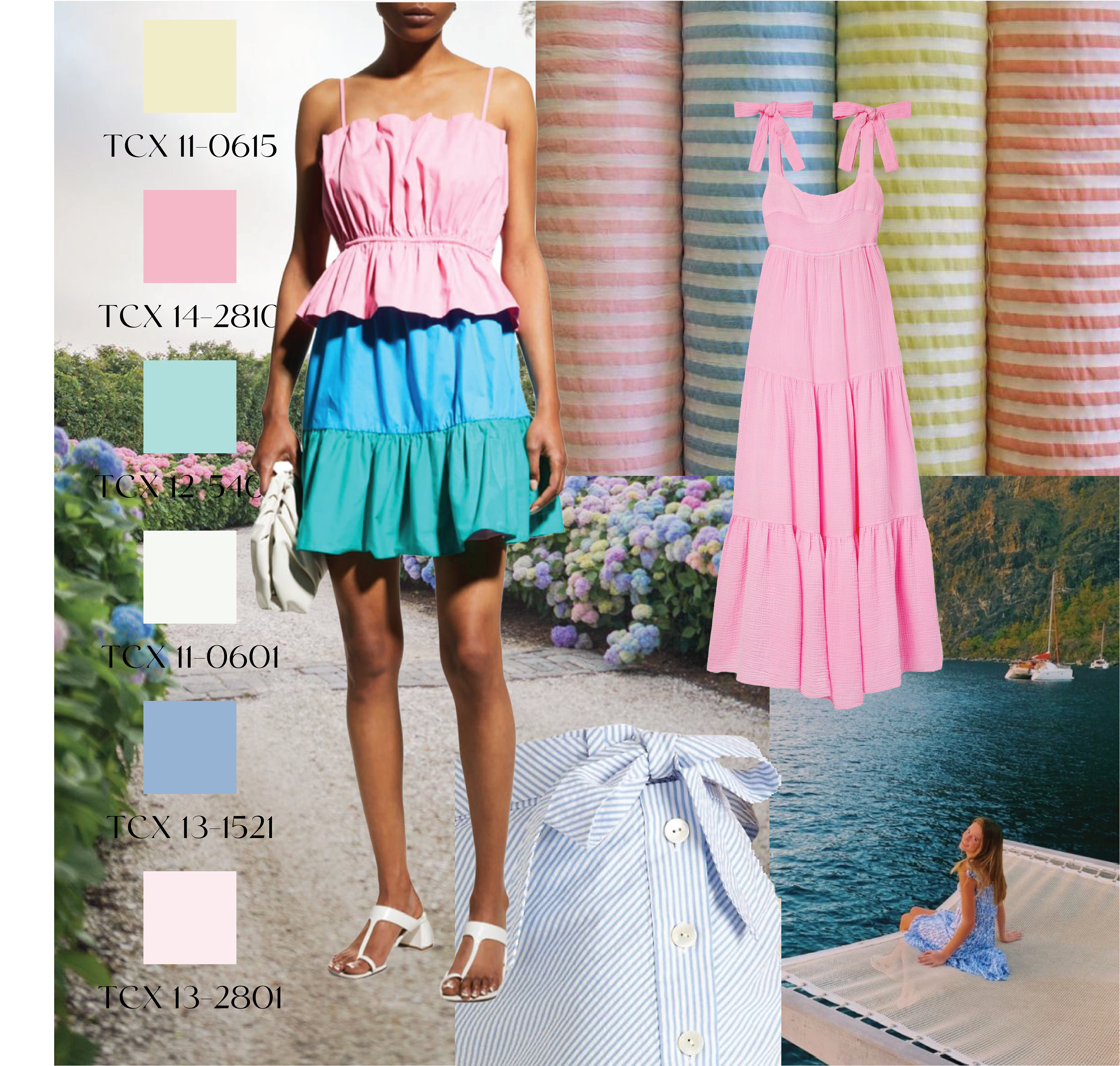 This collection embodies a playful and preppy spirit. Soft pastels and traditional seersucker are the defining elements, creating a light and breezy feel.